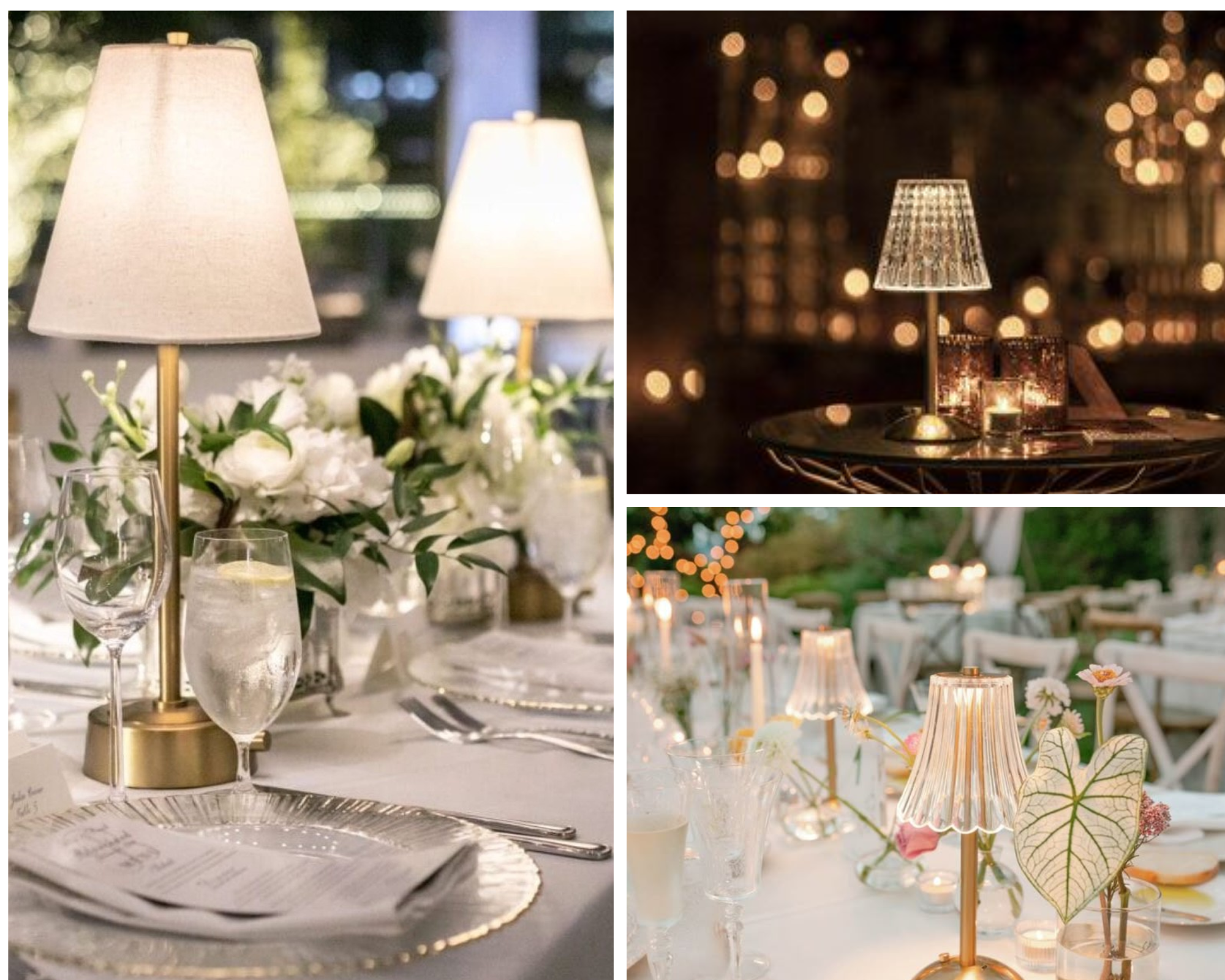 Candles are beautiful—but if you want something different and elevated, try miniature table lamps as centerpieces.