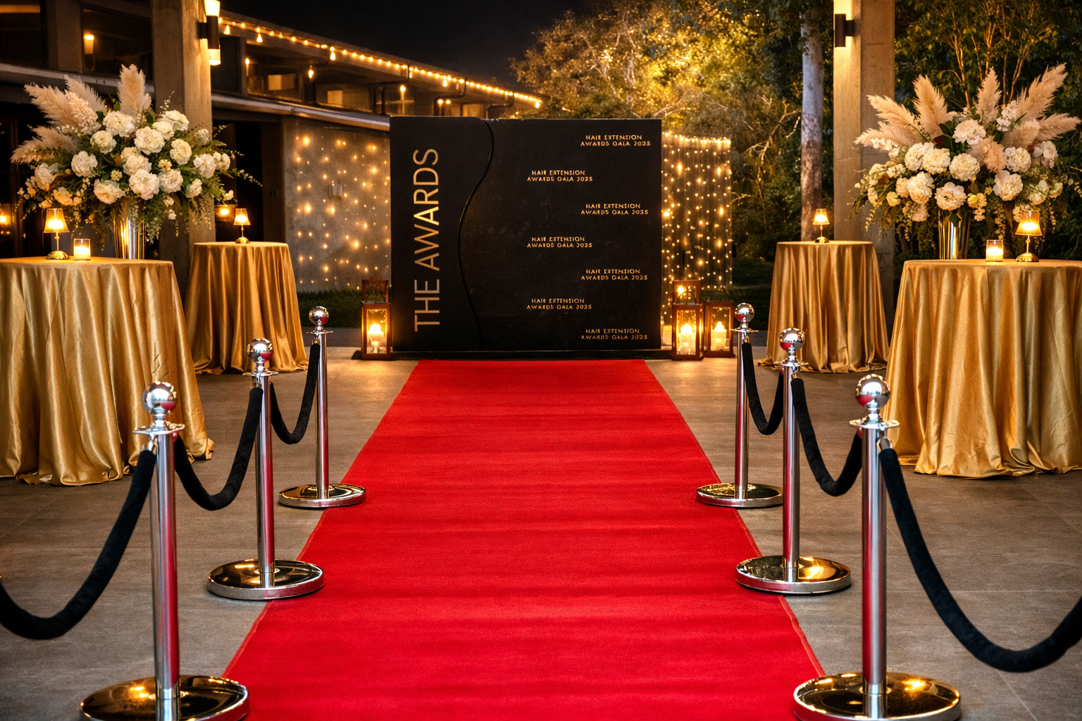 - VIP red carpet entry with bollards and ropes (or gold stanchions), plus signage and a host welcome