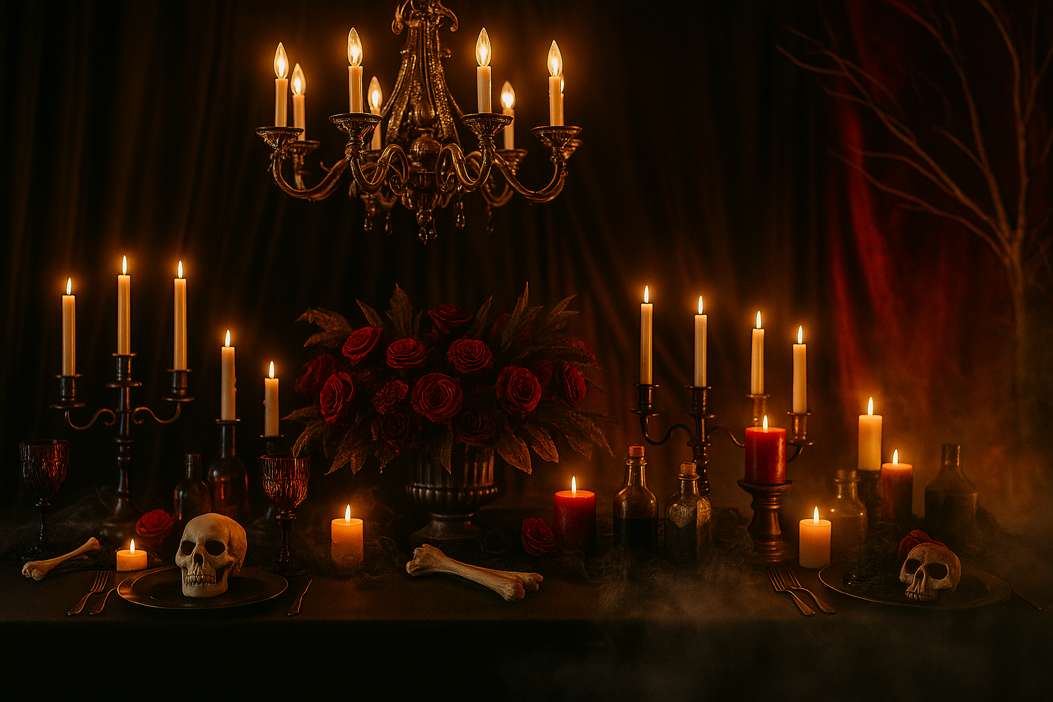 Every Halloween party needs a feature that makes people stop in their tracks. Think a creepy floral chandelier dripping with dark roses, a giant cobweb strung across the room, or a graveyard backdrop where guests line up for photos. These aren’t just decorations, they’re the moments your party becomes unforgettable.