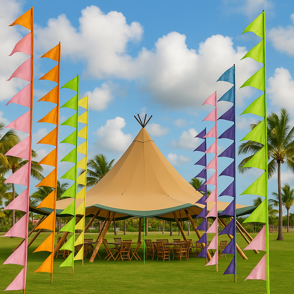 Festival Flags - 2 each colour - Orange, yellow, pink, blue, purple, white